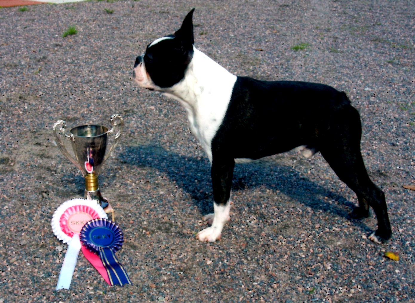 Apposyte Boston terrier Challenge Trophy for Best of Breed Presented by Mrs M. and Miss S. Welch.